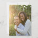 This wedding invitation features a warm, inviting design with two individuals embracing in an outdoor setting surrounded by lush greenery and sunlight. The color palette includes soft blues and grays that harmonize beautifully with the natural backdrop, creating a serene and joyful atmosphere. Captured in a realistic style, this photograph conveys genuine affection and happiness, making it perfect for celebrating love and companionship on your special day.