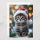 Dieses liebevolle Design zeigt ein niedliches Kätzchen mit strahlend blauen Augen, das eine rote Weihnachtsmütze trägt und von warmen Lichtreflexen umgeben ist. Der unscharfe Lichterhintergrund und winterliche Details erzeugen eine besonders gemütliche und herzliche Weihnachtsstimmung.