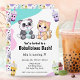 Ce doux panda bébé et tigre de bébé savourent du thé à bulles pour cette invitation fantaisiste de fête anniversaire de enfant.
