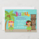 Ce design amusant présente deux jolies filles portant des jupes hula, un palmier et un totem dansant sur la plage.