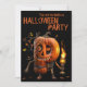 Un halloween drôle de citrouille jack-o-lanterne en forme de la lettre "P" tenant une lampe avec une flamme.