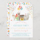 Jolies invitations à la fête d'anniversaire avec des illustrations d'aquarelle de chats portant des casquettes de fête. Confetti coloré avec texte arc-en-ciel qui peut être changé à n'importe quel âge. L'envers est doté d'un motif confetti aux couleurs primaires vives sur un arrière - plan blanc.