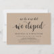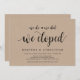 Cette carte d'invitation sur le thème Kraft de ferme rustique (Nous nous sommes mariés, nous l'avons fait, nous nous sommes enfuis) est parfaite pour votre célébration de mariage en fuite / annonce de mariage. Ajoutez vos détails dans la même police / lettrage noir.