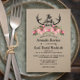 Bois de cerf de style rustique unique + fleurs roses roses vintages graphisme floral + design typographique sur fond de papier imitation kraft. Veuillez le personnaliser avec votre propre occasion de texte-en conséquence ou cliquez sur le bouton "Customiser" pour aller à l'outil de conception où vous pouvez ajouter du texte, modifier la police, la taille du texte, la couleur du texte, le positionnement du texte et plus encore. **Objets correspondants voir collection ici : https://www.zazzle.com/collections/the_hunt_is_over_wedding_collection_floral-119937951722008190?rf=238919973384052768