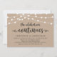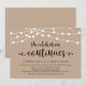 Belles guirlandes lumineuses de ferme rustique moderne, police de caractères noire sur fond kraft brun, annonce de mariage célébré en petit comité, carte d'invitation (La fête continue). C'est parfait pour votre réception de mariage et fête de célébration après le mariage. Ajoutez vos détails dans la même police / lettrage.