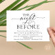 Planifiez une célébration de dîner de répétition de mariage avec la future mariée et le futur marié, avant leur GRAND jour ? Invitez les invités avec cette invitation de dîner de répétition de mariage moderne, romantique et élégante "la nuit avant" carte noire et blanche parfaite.