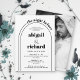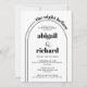 La Nuit avant l'arc noir et blanc mariage répétition dîner Invitation. Ce dîner de répétition Invitation pour la nuit avant le mariage est une combinaison étonnante de noir et blanc. L'invitation présente un design élégant en arc qui ajoute une touche de sophistication. L'expression "la veille" est joliment écrite dans un texte courbe, suivant une courbe douce qui s'étend à droite, créant un sens du mouvement. Les noms du couple sont soulignés avec une typographie audacieuse, ce qui les distingue. Pour ajouter une touche personnelle, le dos de l'invitation montre une belle photo du couple, capturant leur amour et leur bonheur.