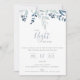 La Nuit Avant, invitation de célébration de répétition de mariage. La carte présente un élégant bouquet floral de jardin dans des tons chic de bleu. Conception de typographie moderne et chic. Le dos de la carte, présenté en bleu illusion pastel, peut être personnalisé.