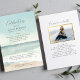 Honore ton être cher avec cette belle célébration de la vie invitation. L'avant est ornée d'une aquarelle paisible représentant les nuages, l'océan et la plage de sable. Ajoutez facilement les détails de votre service de célébration. L'arrière offre un espace pour une photo et un poème ou des écritures (ou supprimer). Le modèle est très simple à utiliser et à changer - créer une invitation qui est parfaite pour tous ceux qui aiment être près de l’eau - si unique et belle et sera chéri pour toujours.
