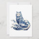Elégant chat bleu et blanc dans le style de "The Wave Off Kanagawa" par l'artiste japonais ukiyo-e en bois Hokusai, spécialement pour les amoureux de les chats.