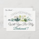 Carte de proposition Bridesmaid avec aménagement de verdure de jardin d'aquarelle. Personnalisez le texte, le style de police, la couleur et la taille.