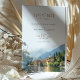 Cette superbe carte mariage de sauvegarde à jour présente une belle aquarelle illustrant l'emblématique lac de Côme en Italie. Les bleus et les verts tranquilles du lac sont complétés par une typographie élégante et fluide qui annonce la date du mariage et d'autres détails importants juste devant la carte. Parfait pour les couples qui planifient un mariage à destination dans le lac de Côme, cette carte est à la fois élégante et instructive. Vos invités seront impressionnés par le design de bon goût et désireux de marquer leur calendrier pour votre journée spéciale. Ne manquez pas l'occasion de donner le ton à votre mariage avec cette inoubliable carte de sauvegarde à jour.