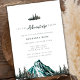 "Let The Adventure Begin" Célébrez le baby shower avec cette aventure de montagne sauvage commencez l'invitation à thème baby shower avec une montagne rustique moderne minimaliste aquarelle, forêt et pinte arbre.