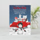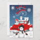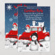 Cette conception présente la nostalgie d'un vieux camion rouge avec quelques animaux arctiques et un bonhomme de neige dans une scène hivernale.