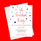 Célébrez la liberté dans le style avec notre Invitation de la Fête Minimaliste de Let Freedom Ring! Ce design élégant et moderne est idéal pour vos réunions du Jour du Souvenir ou de l'Indépendance. Avec une police de calligraphie rouge frappante et de charmantes étoiles bleues accusant les détails de votre événement, cette invitation donne le ton d'une fête patriotique et mémorable. Invitation vos invités de manière sophistiquée et festive avec notre invitation Let Freedom Ring.