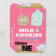 Lait et biscuits Parties scintillant rose et or 1er anniversaire Invitation. Une douce fête pour votre bébé qui a un an.