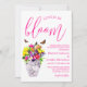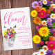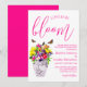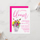 L'amour est en fleurs ! Collection de mariages floraux vifs avec un bouquet dans un vase en marbre entouré de papillons, et accompagnée d'une typographie fuchsia.