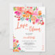 L'amour de Boho orange est en floraison invitation nuptiale fleurie avec joli tableau d'aquarelle de fleurs orange, rose et jaune peint à la main avec une police de script élégante moderne disant L'amour est en fleur, avec feuillage bohème verdoyant. Parfait pour Sping, jardin d'été nuptiale ou mariage.
