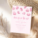 Sweet Valentine thème nuptiale carte d'invitation avec illustration de macarons en forme de coeur rose. Le texte dit "l'amour est dans l'air."