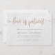 Les Yikes ! Des circonstances imprévues sont difficiles à prévoir, mais avec ces cartes de report mariages, vous pouvez facilement faire savoir à vos proches! Elles disposent d'une arrière - plan en marbre blanc. Les mots "l'amour est patient" apparaissent en haut dans un faux script rose de feuille d'or avec de doux tourbillons. Au verso, il y a un modèle photo à remplacer par le vôtre. Cliquez sur "Personnaliser ce modèle" et commencez à ajouter vos propres détails!
