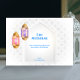 Carte de voeux Ramadan ou Aïd Moubarak, ornée d'une lanterne colorée avec un motif arabe et d'une fenêtre blanche, thème de la célébration et de la fête islamiques. Des paroles contenant des prières pour ceux qui jeûnent pendant le mois du Ramadan. Tout le texte pourrait être facilement customisé.