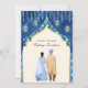 Éblouissez vos invités avec cette élégante invitation de mariage indienne avec une belle arche décorée de rideaux et de lanternes suspendues avec personnalisables illustrations de couple dans différentes combinaisons de couleurs de sherwani, lehenga et turban. Ajoutez simplement les détails de votre événement sur ce modèle facile à utiliser pour en faire une invitation unique.