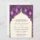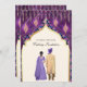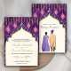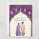 Éblouissez vos invités avec cette élégante invitation de mariage indienne avec une belle arche décorée de rideaux et de lanternes suspendues avec personnalisables illustrations de couple dans différentes combinaisons de couleurs de sherwani, lehenga et turban. Ajoutez simplement les détails de votre événement sur ce modèle facile à utiliser pour en faire une invitation unique.
