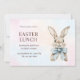 Plongez dans l'esprit des fêtes avec cette charmante invitation au déjeuner de Pâques mettant en vedette un adorable lapin portant une couronne florale sur un fond pastel doux. Parfaite pour rassembler la famille et les amis pour célébrer la saison, cette invitation magnifiquement conçue donne le ton pour un déjeuner de Pâques délicieux et mémorable.
