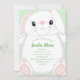 Ce thème design de la collection de Baby showers lapins lapin avec un lapin lapin tout simplement adorable sur une palette de couleurs rose, bleu ou vert célèbre votre anniversaire et Baby shower très spécial. Personnalisez ceci plus loin avec les détails de votre fête d'anniversaire et de votre baby shower facilement et rapidement. Appuyez simplement sur le bouton customiser pour réorganiser et formater le style et le placement du texte. Créé par Rachel Alvia, © Alicorn Studio