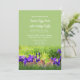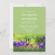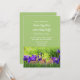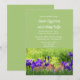 Personnalisez cette invitation de Pâques avec votre texte. Choisissez une police et la couleur du texte qui complèteront votre fête de vacances. Cette charmante invitation de Pâques présente un fond vert printemps avec des iris violets et des lapins en dessous du texte.
