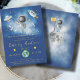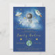 Célébrez l'arrivée prochaine de votre petite étoile avec cette invitation magique de baby shower à thème spatial. Avec l'espace imaginaire Astronaut Earth, roquettes et étoiles tournantes en bleu marine et or colorway.