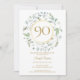 Une guirlande décorative de laurier entoure une fausse bordure en feuille d'or contenant un texte de 90 ans. Vous trouverez ci-dessous les détails de votre anniversaire dans un texte classique et élégant. Le verso comporte des initiales monographiques fixées dans une guirlande à feuille florale et fausse or assortie. Conçu par Thisisnotme©