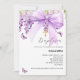 Un élégant arrière - plan blanc, décoré d'une grande lavande, d'un arc de couleur violet, de fleurs de glycine, de papillons et d'une croix dorée. Personnalisez et ajoutez un nom et des détails du parti.