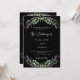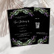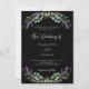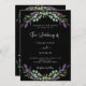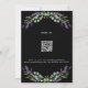 Un arrière - plan noir décoré de fleurs de lavande et de verdure d'eucalyptus. Personnalisez et vos noms et détails. Retour : ajoutez l'URL de votre site Web mariage au code QR pour plus de détails et/ou RSVP.