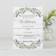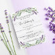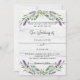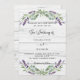 Bois blanc rustique comme arrière - plan décoré de fleurs de lavande et de verdure d'eucalyptus. Personnalisez et vos noms et détails.