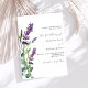 Un arrière - plan blanc décoré d'une grande fleur de lavande et d'une végétation d'eucalyptus. Personnalisez et vos noms et détails.
