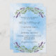 Un ciel blanc et bleu comme arrière - plan décoré de fleurs de lavande et de verdure d'eucalyptus. Personnalisez et vos noms et détails. Retour : ajoutez l'URL de votre site Web mariage au code QR pour plus de détails et/ou RSVP