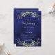 Un arrière - plan bleu marine décoré de fleurs de lavande et de verdure d'eucalyptus. La couleur bleue est inégale. Personnalisez et vos noms et détails. Retour : ajoutez l'URL de votre site Web mariage au code QR pour plus de détails et/ou RSVP.