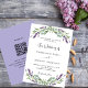 Un arrière - plan blanc décoré de fleurs de lavande et de verdure d'eucalyptus. Personnalisez et vos noms et détails. Retour : ajoutez l'URL de votre site Web mariage au code QR pour plus de détails et/ou RSVP.