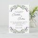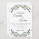 Un arrière - plan blanc décoré de fleurs de lavande et de verdure d'eucalyptus. Personnalisez et vos noms et détails.