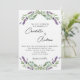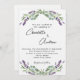 Un arrière - plan blanc décoré de fleurs de lavande et de verdure d'eucalyptus. Personnalisez et vos noms et détails.