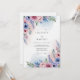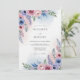 Delicate watercolor washes in soft pink and blue hues evoke a romantic, airy feel. Lush floral arrangements feature roses, peonies, and trailing greenery in shades of lavender and blush. This design offers a dreamy, sophisticated aesthetic.