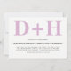Lavande rose et blanc initiales typographie audacieuse faire-part de mariage. Le dos comprend un motif rayé.