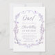 Cette première invitation à l'anniversaire présente un cadre fleuri de lavande orné de papillons et de rubans.
