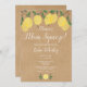 Avec des citrons sur un arrière - plan kraft rustique cette invitation baby shower peut être personnalisée avec vos informations spéciales d'événement et vos initiales monogrammes au verso. Conçu par Thisisnotme©