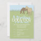 Cette mignonne invitation de baby shower cowboy présente un texte entièrement personnalisable pour toute douche de bébé garçon avec deux poneys bruns debout dans l'herbe verte contre un ciel bleu. Cherchez des options de couleur dans ma boutique ainsi que d'autres produits et cadeaux assortis pour des sacs à main pour une fête ou une douche entièrement thématique!