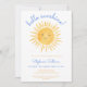 Cette mignonne invitation baby shower est décorée avec un soleil aquarelle et dit Hello Sunshine! dans la typographie stylée bleue. Parfait pour la douche d'un bébé garçon. Facile à personnaliser. Aquarelle originale © Michele Davies.