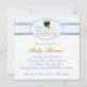 Adorable bébé doux bleu et or petit prince Africain Américain ethnique bébé garçon invitation douche. Cette douce invitation au baby shower de prince ethnique est facilement customisée pour votre événement en ajoutant les détails de votre événement, le style de police, la taille et la couleur de police et le libellé.