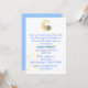 Le bébé doux arrosent l'invitation faite dans le blanc, avec des graphiques d'un bébé de sommeil, sur la lune, avec les étoiles jaunes traînant en bas de l'invitation. Le texte dans le bleu est prêt à personnaliser pour votre événement de baby shower. Invitation mignonne que la maman à être aimera.