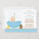 Arrosez la maman pour être avec ce bébé adorable arrosent l'invitation pour un garçon. Ce bleu arrosent des caractéristiques d'invitation un bébé mignon dans un parapluie avec des gouttes de pluie et un ours de nounours. Quelques éléments JDDigiDesign
